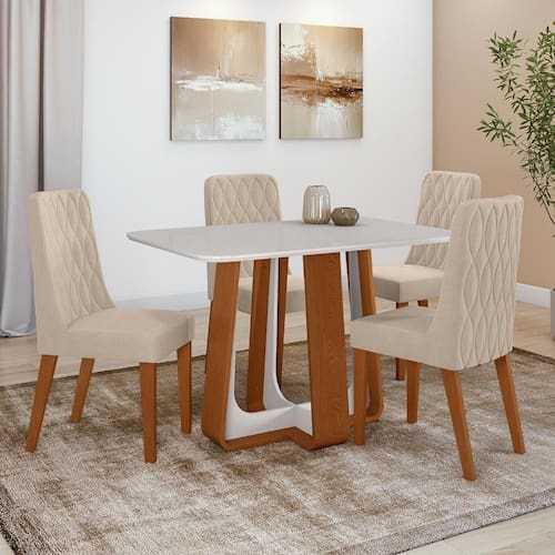 Transforme sua sala de jantar com o Conjunto Easy Pop uma combinação perfeita entre elegância, conforto e resistência. Composto por uma mesa robusta e quatro cadeiras estofadas, esse conjunto foi pensado para proporcionar os inesquecíveis à mesa, com estilo e funcionalidade.