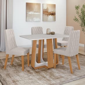 As cadeiras que acompanham o conjunto aliam conforto e sofisticação. Estofadas com espuma D-20 no assento e D-18 no encosto, oferecem uma experiência confortável em todas as refeições. A estrutura em MDF e MDP com pés reforçados garante estabilidade e resistência, suportando até 100kg. O detalhe das sapatas em PVC protege o piso e aumenta a durabilidade. Disponíveis no tecido Linho, as cadeiras se adaptam facilmente a qualquer estilo de decoração. Cantos curvos, com desing moderno, maior e fácil de combinar, ideal para quem busca bom gosto e pde.