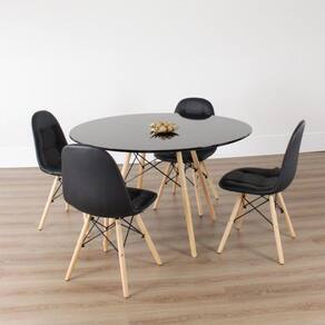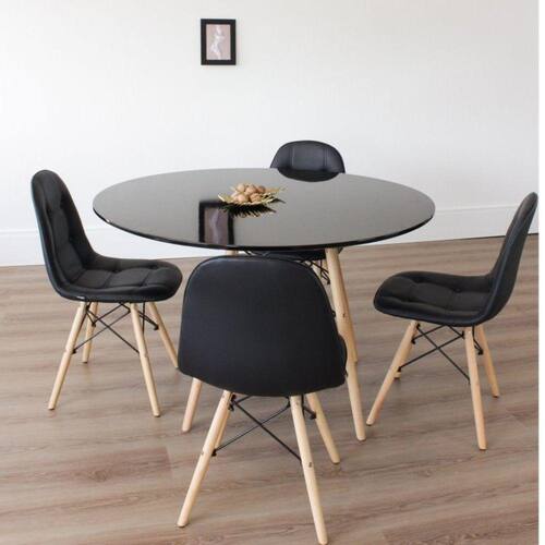 A Mesa Eiffel é queridinha do design e perfeita para quem busca praticidade para sua cozinha, sala de jantar ou área gourmet. Com tampo de MDF colorido e detalhes em madeira e aço ela traz o estilo clássico que amamos. O conjunto com 4 cadeiras Eiffel Botonê completa o kit e garante o custo benefício para transformar o estilo divertido da sua casa com muita praticidade e toques de design. Conjunto composto por: uma Mesa em MDF com espessura de 18mm com pintura alto brilho e base em madeira faia com detalhes em aço e pintura a pó + 4 cadeiras com assento revestido em PU, Base em madeira faia com armação em aço pintado. Possui Rodízio: Não Altura do Conjunto: 82 cm Ambiente: null Ambiente Principal: Sala de Jantar Cor: Preto Informação Complementar: 1x Mesa de Jantar Redonda Eiffel PretoLargura: 120 cmAltura: 75 cmPeso: 17 kgProfundidade: 120 cmNecessita Montagem: Sim1x Conjunto 4 Cadeiras Botonê Eiffel PretoLargura: 45 cmAltura: 82 cmPeso: 4,1 kgProfundidade: 50 cmNecessita Montagem: Sim Tamanho: