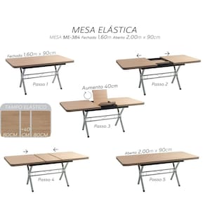 A Mesa de Jantar Elástica possui design funcional, unindo a sofisticação com a praticidade para acomodar com conforto até 10 pessoas quando aberta, tampo na cor amadeirado claro e bordas na cor café, base construída em metal com banho de cromo., transmitindo leveza e puro design.
