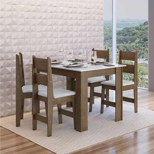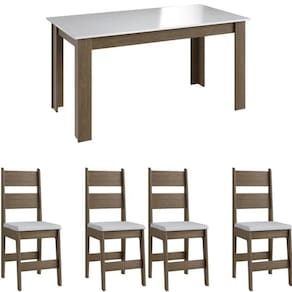 Conjunto Mesa Fixa com 04 Cadeira MDF Milano, CJE11200 da Móveis Canção. Conjunto confeccionado em MDP e MDF de alta qualidade com acabamento em pintura UV. Esse conjunto vai dar uma cara nova e elegante para sua sala de jantar. Possui Portas: Não Altura do Conjunto: 91 cm Ambiente: null Ambiente Principal: Sala de Jantar Cor: Ameixa Negra Informação Complementar: 1x Mesa para Sala de Jantar Fixa 1200x780 Ameixa Negra/Branco Largura: 120 cm Altura: 75 cm Peso: 16 kg Profundidade: 78 cm Necessita Montagem: Sim