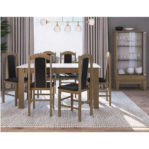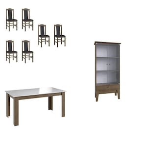 Conjunto Mesa Fixa com Cristaleira e 06 Cadeira 500, CJE11500 da Móveis Canção. Conjunto confeccionado em MDP e cadeiras de madeira com estofamento e acabamento em pintura UV, proporcionando maior beleza e modernidade para sua sala de jantar. Possui Rodízio: Não Altura do Conjunto: 160 cm Ambiente: null Ambiente Principal: Sala de Jantar Cor: Ameixa Negra Informação Complementar: 1x Mesa para Sala de Jantar Fixa 1500x780 Ameixa Negra/Branco Largura: 150 cm Altura: 75 cm Peso: 19,2 kg Profundidade: 78 cm Necessita Montagem: Sim