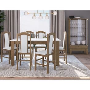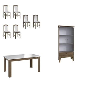 Conjunto Mesa Fixa com Cristaleira e 06 Cadeira 500, CJE11500 da Móveis Canção. Conjunto confeccionado em MDP e cadeiras de madeira com estofamento e acabamento em pintura UV, proporcionando maior beleza e modernidade para sua sala de jantar. Possui Rodízio: Não Altura do Conjunto: 160 cm Ambiente: null Ambiente Principal: Sala de Jantar Cor: Ameixa Negra Informação Complementar: 1x Mesa para Sala de Jantar Fixa 1500x780 Ameixa Negra/Branco Largura: 150 cm Altura: 75 cm Peso: 19,2 kg Profundidade: 78 cm Necessita Montagem: Sim
