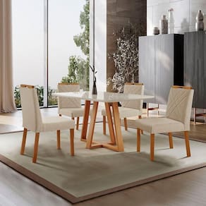 Escala de Brilho: Semi-Brilho Cor Predominante: Mel Encosto e Assento Estofados, Revestidos em Veludo ou Linho Enchimento do Assento: Espuma D-20 Medida da Mesa (A x L x P): 78 X 140 X 80 cm Medida da Base (A x L x P): 75 X 60 X 100 cm Medida do Tampo (L x C x E): 84 X 144 X 2,1 cm Medida da Cadeira/Banco (A x L x P): 94 X 46 X 55 cm Material da Base da Mesa: MDF/Madeira Maciça Tipo de Madeira Maciça da Base da Mesa: Eucalipto Tratado Imunizado e seco em Estufa Peso da Cadeira: 8,5 Kg Cadeira Suporta Até 120 Kg Acabamento da Cadeira: Verniz Natural Material da Estrutura da Cadeira: MDF/Madeira Maciça Cor do Tampo: Off White Cor da Base: Mel Enchimento do Encosto: Espuma D-14 Almofada do Assento: Fixa Estrutura do Assento: MDF 6mm/Espuma 40mm Peso da Mesa: 29 Kg Acabamento da Mesa: Verniz Natural Mesa Suporta Até 30 Kg Formato do Tampo: Retângular Material do Tampo: Vidro 3mm/MDF 18mm