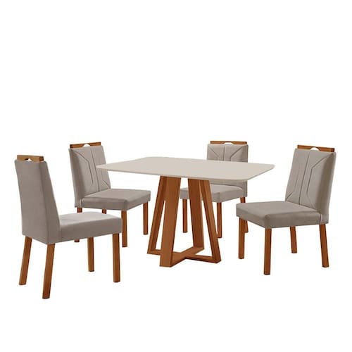 Escala de Brilho: Semi-Brilho Cor Predominante: Mel Encosto e Assento Estofados, Revestidos em Veludo ou Linho Enchimento do Assento: Espuma D-20 Medida da Mesa (A x L x P): 78 X 120 X 90 cm Medida da Base (A x L x P): 75 X 60 X 60 cm Medida do Tampo (L x C x E): 96 X 126 X 2,8 cm Medida da Cadeira/Banco (A x L x P): 94 X 46 X 55 cm Material da Base da Mesa: MDF/Madeira Maciça Tipo de Madeira Maciça da Base da Mesa: Eucalipto Tratado Imunizado e seco em Estufa Peso da Cadeira: 8,5 Kg Cadeira Suporta Até 120 Kg Acabamento da Cadeira: Verniz Natural Material da Estrutura da Cadeira: MDF/Madeira Maciça Cor do Tampo: Off White Cor da Base: Mel Enchimento do Encosto: Espuma D-14 Almofada do Assento: Fixa Estrutura do Assento: MDF 6mm/Espuma 40mm Peso da Mesa: 38 Kg Acabamento da Mesa: Verniz Natural Mesa Suporta Até 30 Kg Formato do Tampo: Retângular Material do Tampo: Vidro 3mm/MDF 25mm