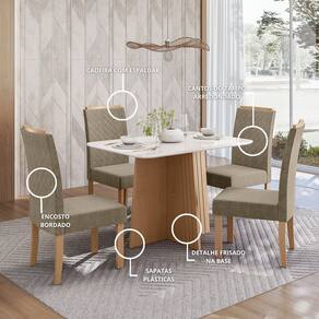 Características Cadeira: 4 Cadeiras com espaldar Densidade espuma D20 Encosto bordado Estrutura em MDF e MDP Peso máximo suportado 120kg Tecido veludo