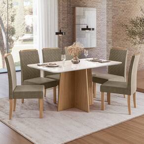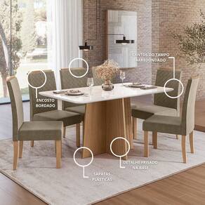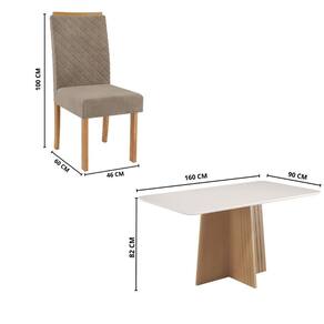 Conjunto Sala de Jantar Mesa Isa 160cm e 6 Cadeiras Veludo Elegance Nuova Sonetto - Branco | Cinza | Marrom