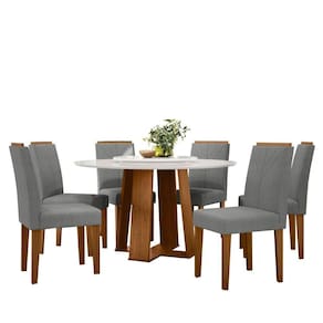 Conjunto Sala de Jantar Mesa Isabela 1,35m com Tampo Giratório e 6 Cadeiras Amanda Ypê/Off White/Ln02 - New Ceval
