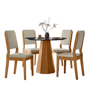 Conjunto Sala de Jantar Mesa Isis 1,00m com 4 Cadeiras Carol Ypê/Preto/Ja01 - New Ceval