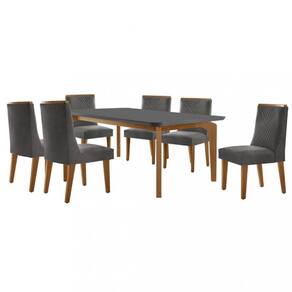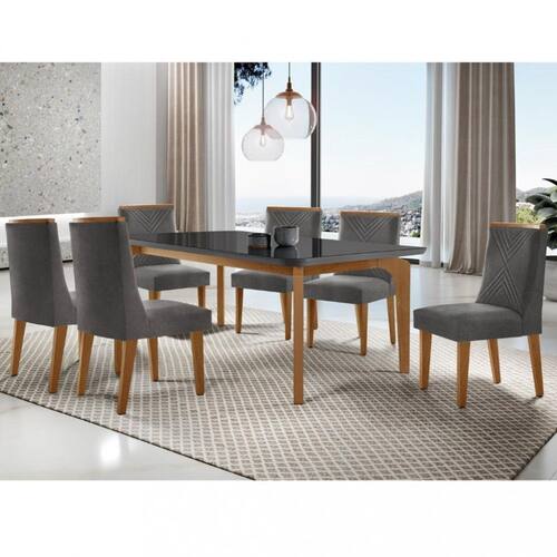 Características: Estrutura em MDF Tampo com vidro temperado Vidro 4mm 6 Cadeiras Cada cadeira suporta até 120 kg Revestimento com tecido linho