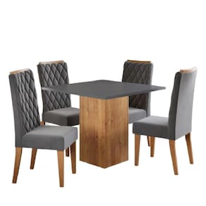 Conjunto Sala De Jantar Mesa Lord Quadrada 0,90m 4 Cadeiras Bele Madeirado/cinza Veludo Viero Madeirado / Cinza