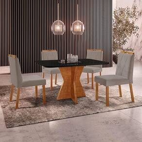 Conjunto Sala De Jantar Mesa Madri 120x80cm Tampo Retângular Vidro Preto Com 4 Cadeiras Bela Veludo Cinza