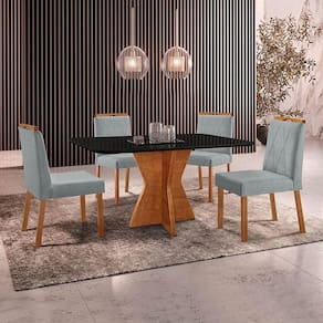 Escala de Brilho: Semi-Brilho Cor Predominante: Mel Encosto e Assento Estofados, Revestidos em Veludo ou Linho Enchimento do Assento: Espuma D-20 Medida da Mesa (A x L x P): 78 X 140 X 80 cm Medida da Base (A x L x P): 75 X 63 X 98 cm Medida do Tampo (L x C x E): 84 X 144 X 2,1 cm Medida da Cadeira/Banco (A x L x P): 94 X 46 X 55 cm Material da Base da Mesa: MDF Peso da Cadeira: 8,5 Kg Cadeira Suporta Até 120 Kg Acabamento da Cadeira: Verniz Natural Material da Estrutura da Cadeira: MDF/Madeira Maciça Cor do Tampo: Preto Cor da Base: Mel Enchimento do Encosto: Espuma D-14 Almofada do Assento: Fixa Estrutura do Assento: MDF 6mm/Espuma 40mm Peso da Mesa: 29,5 Kg Acabamento da Mesa: Verniz Natural Mesa Suporta Até 30 Kg Formato do Tampo: Retângular Material do Tampo: Vidro 3mm/MDF 18mm