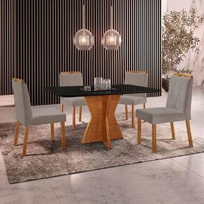 Escala de Brilho: Semi-Brilho Cor Predominante: Mel Encosto e Assento Estofados, Revestidos em Veludo ou Linho Enchimento do Assento: Espuma D-20 Medida da Mesa (A x L x P): 78 X 140 X 80 cm Medida da Base (A x L x P): 75 X 63 X 98 cm Medida do Tampo (L x C x E): 84 X 144 X 2,1 cm Medida da Cadeira/Banco (A x L x P): 94 X 46 X 55 cm Material da Base da Mesa: MDF Peso da Cadeira: 8,5 Kg Cadeira Suporta Até 120 Kg Acabamento da Cadeira: Verniz Natural Material da Estrutura da Cadeira: MDF/Madeira Maciça Cor do Tampo: Preto Cor da Base: Mel Enchimento do Encosto: Espuma D-14 Almofada do Assento: Fixa Estrutura do Assento: MDF 6mm/Espuma 40mm Peso da Mesa: 29,5 Kg Acabamento da Mesa: Verniz Natural Mesa Suporta Até 30 Kg Formato do Tampo: Retângular Material do Tampo: Vidro 3mm/MDF 18mm