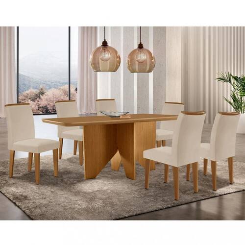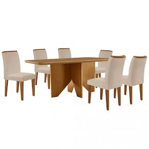Características: Estrutura em MDF Tampo em MDF Pintura UV 6 Cadeiras Cada cadeira suporta até 120 kg Revestimento com tecido linho