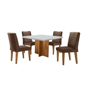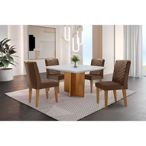 Conjunto Sala de Jantar Mesa Olímpia 90cm MDF Canto Reto e 4 Cadeiras Liz Moderna - Marrom