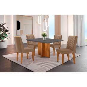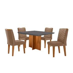 Conjunto Sala de Jantar Mesa Olímpia 90cm Tampo em MDF Canto Copo e 4 Cadeiras Liz Moderna - Cinza Claro