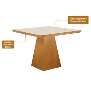 Caracteristicas Mesa: Acabamento UV Estrutura 100 em MDF Tampo em taburato com quinas abaoladas Vidro de 4mm temperado e serigrafado
