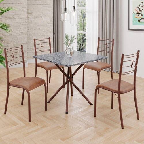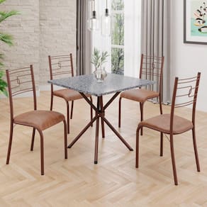 O Conjunto Sala de Jantar Paraty é uma ótima escolha para quem busca combinar estilo e praticidade. Este conjunto apresenta uma mesa quadrada com um design elegante e moderno, acompanhada por quatro cadeiras. A mesa tem uma estrutura em aço, que oferece estabilidade ao conjunto. O tampo em pedra granito ocre apresenta uma estética sofisticada e acolhedora. A tonalidade ocre adiciona valor e elegância ao ambiente, enquanto a pedra granito oferece durabilidade e resistência a riscos e manchas. Essa combinação de cores naturais e resistência prática resulta em um visual clássico e funcional, tornando o tampo em pedra granito ocre uma ótima escolha para aprimorar sua sala de jantar. Medida da Mesa (A x L x P): 75,3 cm x 70 cm x 70 cm Peso da Mesa: 29,7 kg Mesa suporta até: 15.0000 Acabamento da Cadeira/Banco: Pintura Texturizada Acabamento da Mesa: Pintura Texturizada Ambiente Principal: Sala de Jantar Cadeira/Banco estofada: Somente Assento Estofado Cadeira/Banco Estofada: Somente Assento Estofado Cadeira/Banco suporta até: 120.0000 codigo_ean: 7909903603574 Complexidade da Montagem: Média: pode ser montado por mais de uma pessoa e/ou necessite de maior conhecimento para montagem Cor: Courino Marrom / Marrom Cor do Produto: Courino Marrom / Marrom De Canto (Canto Alemão): Não Escala de Brilho: Semi-Fosco Espessura do Tampo: 18 mm Formato do Tampo: Quadrado Itens Inclusos: 1 Mesa, 4 Cadeiras, Manual de Montagem e Ferragens. Manual de Montagem e Instalação: https://product-hub-prd.madeiramadeira.com.br/896218/documents/4ec30d7e-dc2e-4319-bda4-b59a0c878b05tagemmesaparatybaseipanema.pdf Material da Base da Mesa: Aço Material da Estrutura da Cadeira: Aço Material do Tampo: Granito Medida da Base (A x L x P): 73,5 cm x 46 cm x 46 cm Medida da Cadeira/Banco (A x L x P): 90 cm x 36,4 cm x 46 cm Medida do Tampo (L x C x E): 70 cm x 70 cm x 1,8 cm Mesa Extensível: Não Necessita Montagem: Sim Origem do Produto: Nacional Peso da Cadeira/Banco: 2,38 kg Possui Apoio Para os Pés: Não Quantidade de Cadeiras: 4 Quantidade de Lugares: 04 Recomendações de Uso, Manutenção e Limpeza: Limpe a superfície usando um pano úmido com a solução(75%água + 15%detergente neutro), torça para retirar o excesso e, em seguida, finalize com um pano limpo e seco. Sistema de Montagem: PARAFUSOS
