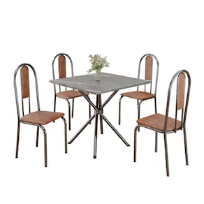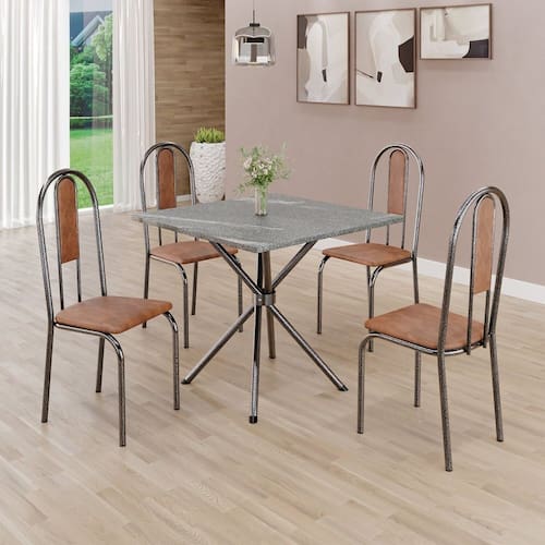 Conjunto Sala de Jantar Mesa Quadrada 70x70cm Tampo Granito Topázio 4 Cadeiras Linda Yescasa Marrom/Prata