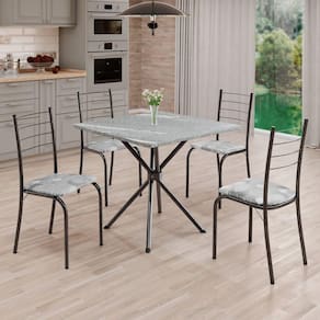 Conjunto Sala de Jantar Mesa Quadrada 70x70cm Tampo Granito Topázio 4 Cadeiras Rio Paraopeba / Mart Prata
