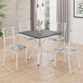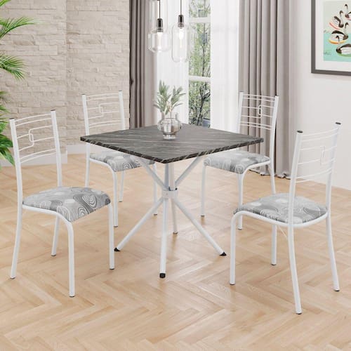 Conjunto Sala de Jantar Mesa Quadrada 70x70cm Tampo Mdp Ardósia Indiana 4 Cadeiras Paraty Paraopeba / Branco