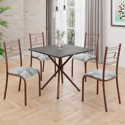 Conjunto Sala de Jantar Mesa Quadrada 70x70cm Tampo Mdp Ardósia Indiana 4 Cadeiras Paraty Paraopeba / Marrom