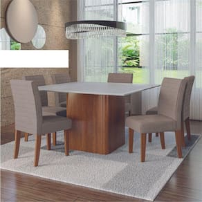 MODELO: Conjunto Sala de Jantar Mesa Quadrada Montevideo 1,36m 6 Cadeiras Creta