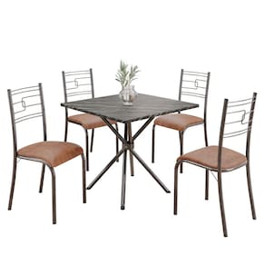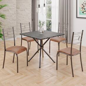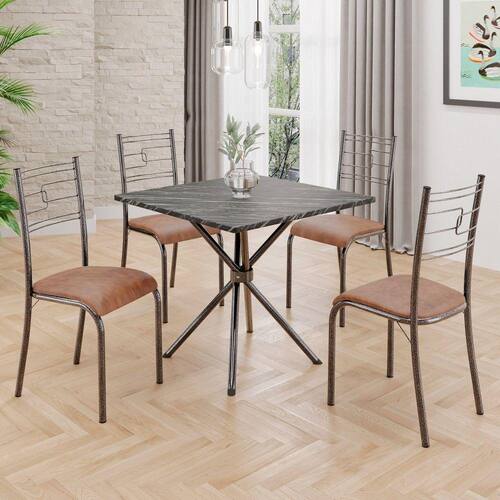 Conjunto Sala de Jantar Mesa Quadrada70x70cm Tampo Ardósia Indiana 4 Cadeiras Paraty Courino Marrom / Mart Prata