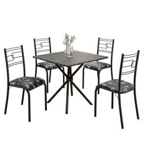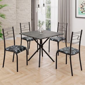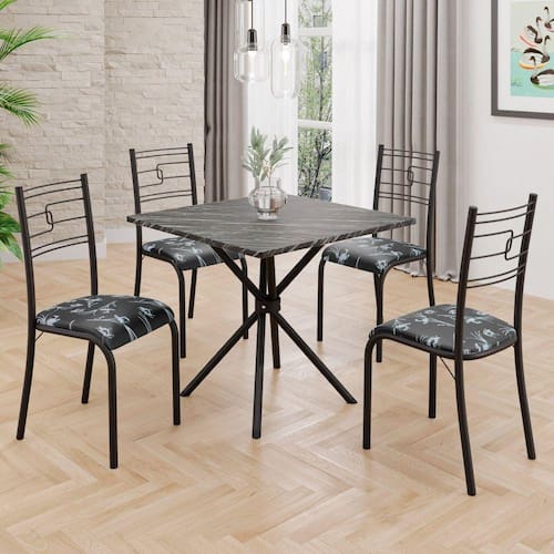 Conjunto Sala de Jantar Mesa Quadrada70x70cm Tampo Ardósia Indiana 4 Cadeiras Paraty Preto Floral / Preto Fosco
