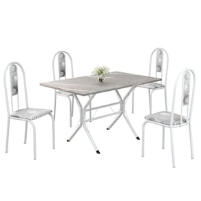 Este conjunto de mesa retangular e 4 cadeiras oferece estilo e praticidade. Com estrutura tubular em aço para estabilidade, o tampo em pedra granito adiciona sofisticação e resistência a riscos e manchas. As cadeiras combinam harmoniosamente com a mesa, garantindo conforto com estofamento. Ideal para diversos espaços, é perfeito para receber convidados ou desfrutar de refeições em família, criando um ambiente acolhedor e elegante. Medida da Mesa (A x L x P): 75,8 cm x 100 cm x 60 cm Peso da Mesa: 36.3 Mesa suporta até: 15 Acabamento da Cadeira/Banco: Pintura Texturizada Acabamento da Mesa: Polido Ambiente Principal: Sala de Jantar Cadeira/Banco estofada: Encosto e Assento Estofados Cadeira/Banco suporta até: 120 kg Complexidade da Montagem: Média: pode ser montado por mais de uma pessoa e/ou necessite de maior conhecimento para montagem Cor: Paraopeba/Branco Cor do Produto: Paraopeba/Branco Cor Secundária: Cinza De Canto (Canto Alemão): Não Enchimento do Assento: Espuma D-12 Escala de Brilho: Semi-Fosco Espessura do Tampo: 18 Estrutura do Assento: MDP de 15mm, espuma 1,2mm, courino. Formato do Tampo: Retangular Itens Inclusos: 1 Mesa, 4 Cadeiras, Manual de Montagem e Ferragens. Manual de Montagem e Instalação: https://product-hub-prd.madeiramadeira.com.br/905364/documents/bf874d4a-e85e-4faf-9c06-6019cc4f9dff1941778524617153417164104.pdf Material da Base da Mesa: Aço Material da Estrutura da Cadeira: Aço Material do Tampo: Granito Medida da Cadeira/Banco (A x L x P): 92X cm x 37,5X cm x 45,5X cm Medida do Tampo (L x C x E): 60 cm x 100 cm x 1,8 cm Mesa Extensível: Não Necessita Montagem: Sim Origem do Produto: Nacional Peso da Cadeira/Banco: 3,36 kg Possui Apoio Para os Pés: Não Quantidade de Lugares: 04 Recomendações de Uso, Manutenção e Limpeza: Usar um pano de tecido macio e seco, evitar detergentes, alvejantes e produtos químicos de limpeza; no tampo usar tecido macio levemente umedecido. Revestimento da Cadeira/Banco: Courino Sistema de Montagem: PARAFUSOS