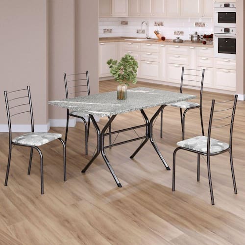 O Conjunto Sala de Jantar Rio é uma ótima escolha para quem busca combinar estilo e praticidade. Este conjunto apresenta uma mesa Retangular com um design elegante e moderno, acompanhada por quatro cadeiras. A mesa tem uma estrutura em aço, que oferece estabilidade ao conjunto. O tampo em pedra granito topázio apresenta uma estética sofisticada e acolhedora. A tonalidade topázio adiciona calor e elegância ao ambiente, enquanto a pedra granito oferece durabilidade e resistência a riscos e manchas. Essa combinação de cores naturais e resistência prática resulta em um visual clássico e funcional, tornando o tampo em pedra granito topázio uma ótima escolha para aprimorar sua sala de jantar. Medida da Mesa (A x L x P): 75,8 cm x 100 cm x 60 cm Peso da Mesa: 34,6 kg Mesa suporta até: 15 kg Acabamento da Cadeira/Banco: Pintura Texturizada Acabamento da Mesa: Pintura Texturizada Ambiente Principal: Sala de Jantar Cadeira/Banco estofada: Somente Assento Estofado Cadeira/Banco suporta até: 120 kg Complexidade da Montagem: Média: pode ser montado por mais de uma pessoa e/ou necessite de maior conhecimento para montagem Cor: Paraopeba / Mart Prata Cor do Produto: Paraopeba / Mart Prata Cor Secundária: Cinza De Canto (Canto Alemão): Não Escala de Brilho: Semi-Fosco Espessura do Tampo: 18 mm Estrutura do Assento: MDP de 15mm, espuma 1,2mm, courino. Formato do Tampo: Retangular Itens Inclusos: 1 Mesa, 4 Cadeiras, Manual de Montagem e Ferragens Manual de Montagem e Instalação: https://product-hub-prd.madeiramadeira.com.br/897708/documents/9df5969e-615f-4e06-8522-2b9222ad6b451837585cjriocabofrio.pdf Material da Base da Mesa: Aço Material da Estrutura da Cadeira: Aço Material do Tampo: Granito Medida da Base (A x L x P): 74 cm x 58,9 cm x 70 cm Medida da Cadeira/Banco (A x L x P): 84,5 cm x 37,5 cm x 41,5 cm Medida do Tampo (L x C x E): 60 cm x 100 cm x 1,8 cm Mesa Extensível: Não Necessita Montagem: Sim Origem do Produto: Nacional Peso da Cadeira/Banco: 2,48 kg Possui Apoio Para os Pés: Não Quantidade de Lugares: 04 Recomendações de Uso, Manutenção e Limpeza: Limpe a superfície usando um pano úmido com a solução(75%água + 15%detergente neutro), torça para retirar o excesso e, em seguida, finalize com um pano limpo e seco. Sistema de Montagem: Parafusos