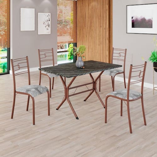 Conjunto Sala de Jantar Mesa Retangular 100x60cm Tampo Madeira Mdp Ardósia Indiana 4 Cadeiras Paraty Paraopeba / Marrom