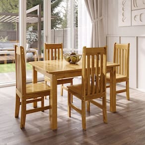 4 Cadeiras Medida da Mesa (A x L x P): 78,50 x 120 x 90 Peso da Mesa: 21,48 kg Mesa suporta até: 120 kg Acabamento da Cadeira/Banco: Pintura UV Acabamento da Mesa: Pintura UV Acompanha Manual de Instalação: Sim Ambiente Principal: Sala de Jantar Cadeira/Banco Estofada: Não Cadeira/Banco estofada: Não Cadeira/Banco Suporta Até: 120.0000 Cadeira/Banco suporta até: 120 kg codigo_ean: 7900288252739 Complexidade da Montagem: Baixa: pode ser montado por uma pessoa sozinha Configuração do Conjunto: Mesa com Cadeiras Cor: Nogueira Cor do Produto: Nogueira Cor Secundária: Marrom De Canto (Canto Alemão): Não Design da Base: 4 Pés Escala de Brilho: Semi-Brilho Espessura do Tampo: 25 mm Estrutura do Assento: Madeira Maciça Formato do Tampo: Retangular Informações Complementares: Possui cantos arredondados e acabamentos com Pintura UV e Verniz Acetinado Atóxico. Encostos das cadeiras no estilo ripado, aumentando a estabilidade e conforto. Itens Inclusos: 1 Mesa, 4 Cadeiras, Kit Ferragens e Manual de Montagem Linha ou Coleção: Essen Manual de Montagem e Instalação: https://product-hub-prd.madeiramadeira.com.br/860650447/documents/513e2255-1800-4cf1-ace6-41231025aaa63264132634117598490949927.pdf Marca: Espresso Móveis Material da Base da Mesa: Madeira Maciça Material da Estrutura da Cadeira: Madeira Maciça Material do Tampo: Madeira Maciça Material Principal: Madeira Maciça Medida da Cadeira/Banco (A x L x P): 107 x 40,50 x 42,50 Medida do Tampo (L x C x E): 120 x 90 x 2,5 Mesa Extensível: Não Necessita Montagem: Sim Origem do Produto: Nacional Peso da Cadeira/Banco: 6,15 kg Possui Apoio para Braços: Não Possui Apoio Para os Pés: Não Possui Vidro: Não Quantidade de Cadeiras: 4 Quantidade de Lugares: 04 Recomendações de Uso, Manutenção e Limpeza: Limpar com flanela ou pano macio seco, não utilizar produtos abrasivos, desengordurantes, álcool ou solvente. Sistema de Montagem: Parafuso, cavilha e cola. Tipo de Madeira Maciça da Base da Mesa: Pinus Tipo de Madeira Maciça do Tampo: Pinus