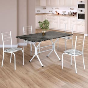 Conjunto Sala de Jantar Mesa Retangular 120x75cm Tampo Ardósia Indiana 4 Cadeiras Rio Paraopeba / Branco