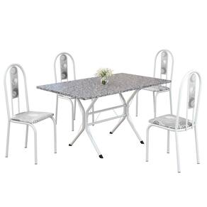 Este conjunto de mesa retangular e 4 cadeiras oferece estilo e praticidade. Com estrutura tubular em aço para estabilidade, o tampo em pedra granito adiciona sofisticação e resistência a riscos e manchas. As cadeiras combinam harmoniosamente com a mesa, garantindo conforto com estofamento. Ideal para diversos espaços, é perfeito para receber convidados ou desfrutar de refeições em família, criando um ambiente acolhedor e elegante. Medida da Mesa (A x L x P): 75,8 cm x 120 cm x 75 cm Peso da Mesa: 52.7 Mesa suporta até: 15 Acabamento da Cadeira/Banco: Pintura Texturizada Acabamento da Mesa: Polido Ambiente Principal: Sala de Jantar Cadeira/Banco estofada: Encosto e Assento Estofados Cadeira/Banco suporta até: 120 kg Complexidade da Montagem: Média: pode ser montado por mais de uma pessoa e/ou necessite de maior conhecimento para montagem Cor: Paraopeba/Branco Cor do Produto: Paraopeba/Branco Cor Secundária: Cinza De Canto (Canto Alemão): Não Enchimento do Assento: Espuma D-12 Escala de Brilho: Semi-Fosco Espessura do Tampo: 18 Estrutura do Assento: MDP de 15mm, espuma 1,2mm, courino. Formato do Tampo: Retangular Itens Inclusos: 1 Mesa, 4 Cadeiras, Manual de Montagem e Ferragens. Manual de Montagem e Instalação: https://product-hub-prd.madeiramadeira.com.br/905835/documents/fd7ed62b-d444-459a-889b-eb49385246461942132524617153464141578.pdf Material da Base da Mesa: Aço Material da Estrutura da Cadeira: Aço Material do Tampo: Granito Medida da Cadeira/Banco (A x L x P): 92X cm x 37,5X cm x 45,5X cm Medida do Tampo (L x C x E): 75 cm x 120 cm x 1,8 cm Mesa Extensível: Não Necessita Montagem: Sim Origem do Produto: Nacional Peso da Cadeira/Banco: 3,36 kg Possui Apoio Para os Pés: Não Quantidade de Lugares: 04 Recomendações de Uso, Manutenção e Limpeza: Usar um pano de tecido macio e seco, evitar detergentes, alvejantes e produtos químicos de limpeza; no tampo usar tecido macio levemente umedecido. Revestimento da Cadeira/Banco: Courino Sistema de Montagem: PARAFUSOS