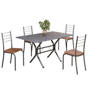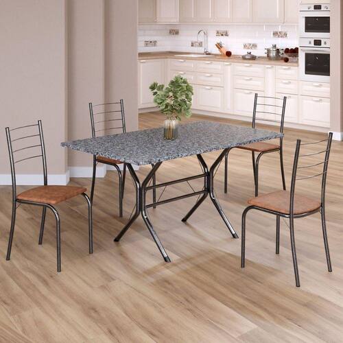 Conjunto Sala de Jantar Mesa Retangular 120x75cm Tampo Granito Ocre 4 Cadeiras Rio C. Marrom / Mart Prata