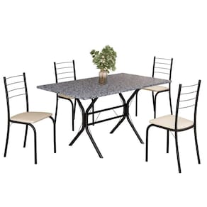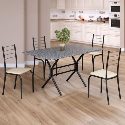 Conjunto Sala de Jantar Mesa Retangular 120x75cm Tampo Granito Ocre 4 Cadeiras Rio Creme / Preto Fosco