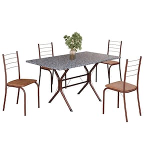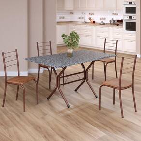 Conjunto Sala de Jantar Mesa Retangular 120x75cm Tampo Granito Ocre 4 Cadeiras Rio Marrom