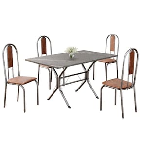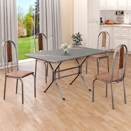 Este conjunto de mesa retangular e 4 cadeiras oferece estilo e praticidade. Com estrutura tubular em aço para estabilidade, o tampo em pedra granito adiciona sofisticação e resistência a riscos e manchas. As cadeiras combinam harmoniosamente com a mesa, garantindo conforto com estofamento. Ideal para diversos espaços, é perfeito para receber convidados ou desfrutar de refeições em família, criando um ambiente acolhedor e elegante. Medida da Mesa (A x L x P): 75,8 cm x 120 cm x 75 cm Peso da Mesa: 55.16 Mesa suporta até: 15 Acabamento da Cadeira/Banco: Pintura Texturizada Acabamento da Mesa: Polido Ambiente Principal: Sala de Jantar Cadeira/Banco estofada: Somente Assento Estofado Cadeira/Banco suporta até: 120 kg Complexidade da Montagem: Média: pode ser montado por mais de uma pessoa e/ou necessite de maior conhecimento para montagem Cor: Marrom/Prata Cor do Produto: Marrom/Prata Cor Secundária: Marrom De Canto (Canto Alemão): Não Enchimento do Assento: Espuma D-12 Escala de Brilho: Semi-Fosco Espessura do Tampo: 18 Estrutura do Assento: MDP de 15mm, espuma 1,2mm, courino. Formato do Tampo: Retangular Itens Inclusos: 1 Mesa, 4 Cadeiras, Manual de Montagem e Ferragens. Manual de Montagem e Instalação: https://product-hub-prd.madeiramadeira.com.br/905409/documents/4ab3abd2-c043-44c7-ba56-c3f69e496a791942692524617153499709771.pdf Material da Base da Mesa: Aço Material da Estrutura da Cadeira: Aço Material do Tampo: Granito Medida da Cadeira/Banco (A x L x P): 92X cm x 37,5X cm x 45,5X cm Medida do Tampo (L x C x E): 75 cm x 120 cm x 1,8 cm Mesa Extensível: Não Necessita Montagem: Sim Origem do Produto: Nacional Peso da Cadeira/Banco: 3,36 kg Possui Apoio Para os Pés: Não Quantidade de Lugares: 04 Recomendações de Uso, Manutenção e Limpeza: Usar um pano de tecido macio e seco, evitar detergentes, alvejantes e produtos químicos de limpeza; no tampo usar tecido macio levemente umedecido. Revestimento da Cadeira/Banco: Courino Sistema de Montagem: PARAFUSOS