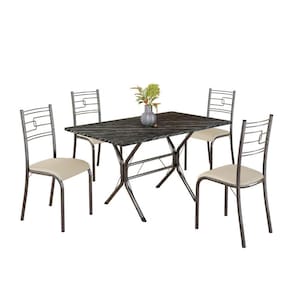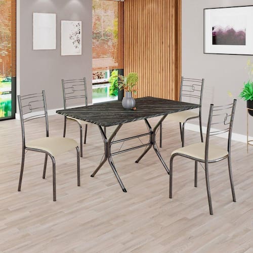 Conjunto Sala de Jantar Mesa Retangular 120x75cm Tampo Madeira Mdp Ardósia Indiana 4 Cadeiras Paraty Creme / Mart Prata