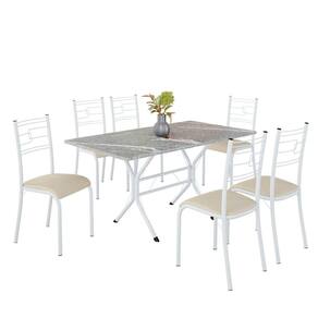 Conjunto Sala de Jantar Mesa Retangular 140x75cm Tampo Granito Topázio 6 Cadeiras Paraty Creme / Branco