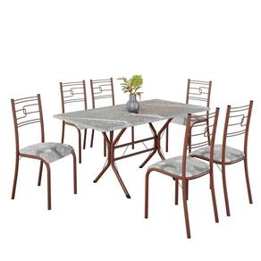 Conjunto Sala de Jantar Mesa Retangular 140x75cm Tampo Granito Topázio 6 Cadeiras Paraty Paraopeba / Marrom