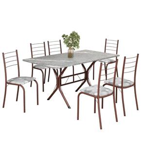 Conjunto Sala de Jantar Mesa Retangular 140x75cm Tampo Granito Topázio 6 Cadeiras Rio Paraopeba / Marrom