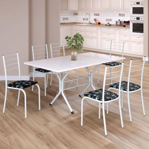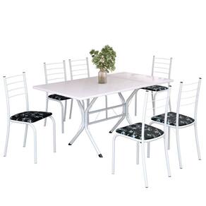 Conjunto Sala de Jantar Mesa Retangular 140x75cm Tampo Madeira Mdp 6 Cadeiras Rio Preto Floral / Branco