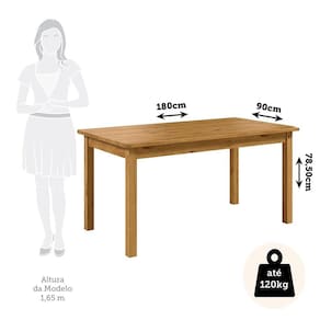 8 Cadeiras Medida da Mesa (A x L x P): 78,50 x 180 x 90 Peso da Mesa: 30,12 kg Mesa suporta até: 120 kg Acabamento da Cadeira/Banco: Pintura UV Acabamento da Mesa: Pintura UV Acompanha Manual de Instalação: Sim Ambiente Principal: Sala de Jantar Cadeira/Banco Estofada: Não Cadeira/Banco estofada: Não Cadeira/Banco Suporta Até: 120.0000 Cadeira/Banco suporta até: 120 kg codigo_ean: 7900288252852 Complexidade da Montagem: Baixa: pode ser montado por uma pessoa sozinha Configuração do Conjunto: Mesa com Cadeiras Cor: Nogueira Cor do Produto: Nogueira Cor Secundária: Marrom De Canto (Canto Alemão): Não Design da Base: 4 Pés Escala de Brilho: Semi-Brilho Espessura do Tampo: 25 mm Estrutura do Assento: Madeira Maciça Formato do Tampo: Retangular Informações Complementares: Possui cantos arredondados e acabamentos com Pintura UV e Verniz Acetinado Atóxico. Encostos das cadeiras no estilo ripado, aumentando a estabilidade e conforto. Itens Inclusos: 1 Mesa, 8 Cadeiras, Kit Ferragens e Manual de Montagem Linha ou Coleção: Essen Manual de Montagem e Instalação: https://product-hub-prd.madeiramadeira.com.br/574212453/documents/9e25abcf-2c6e-4bbe-8b38-9adc019cf1963264373634117598497041833.pdf Marca: Espresso Móveis Material da Base da Mesa: Madeira Maciça Material da Estrutura da Cadeira: Madeira Maciça Material do Tampo: Madeira Maciça Material Principal: Madeira Maciça Medida da Cadeira/Banco (A x L x P): 107 x 40,50 x 42,50 Medida do Tampo (L x C x E): 180 x 90 x 2,5 Mesa Extensível: Não Necessita Montagem: Sim Origem do Produto: Nacional Peso da Cadeira/Banco: 6,15 kg Possui Apoio para Braços: Não Possui Apoio Para os Pés: Não Possui Vidro: Não Quantidade de Cadeiras: 8 Quantidade de Lugares: 08 Recomendações de Uso, Manutenção e Limpeza: Limpar com flanela ou pano macio seco, não utilizar produtos abrasivos, desengordurantes, álcool ou solvente. Sistema de Montagem: Parafuso, cavilha e cola. Tipo de Madeira Maciça da Base da Mesa: Pinus Tipo de Madeira Maciça do Tampo: Pinus