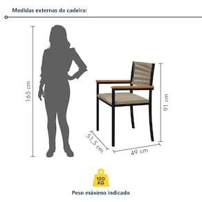 O conjunto inclui 8 cadeiras, sendo 2 com braço e 6 sem braço.