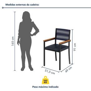 O conjunto inclui 6 cadeiras, sendo 2 com braço e 4 sem braço.