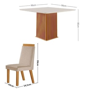 Conjunto Sala de Jantar Mesa Riviera com Tampo de Vidro 90cm e 4 Cadeiras Riviera LJ Moveis Transforme sua sala de jantar com o charme e a sofisticacao do Conjunto Sala de Jantar Mesa com Tampo de Vidro 90cm e 4 Cadeiras em MDF Riviera LJ Moveis. Com design contemporaneo, a mesa possui tampo em taburato com quinas abauladas e vidro temperado serigrafado de 4mm, garantindo beleza e durabilidade. As cadeiras, com estrutura 100 em MDF, apresentam encosto bordado e espuma D20 no assento e D18 no encosto, oferecendo conforto e estilo. Cada cadeira suporta ate 100kg, proporcionando seguranca no uso diario. Ideal para quem busca elegancia e aconchego em cada refeicao.