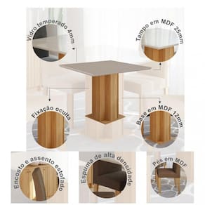 Características Cadeira: Acompanha 4 cadeiras Assento e encosto estofado Estrutura em MDF Espuma de alta densidade Pés em MDF Suporta até 100kg